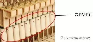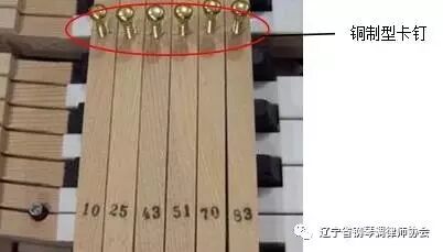 卡钉是键盘与击弦机的连接件,用于传导键盘的运动能量,从而触发击弦机的运作。卡钉有三种设计形式,一般为铜质卡钉或螺母卡钉,大型立式钢琴采用加长型木钮卡钉。